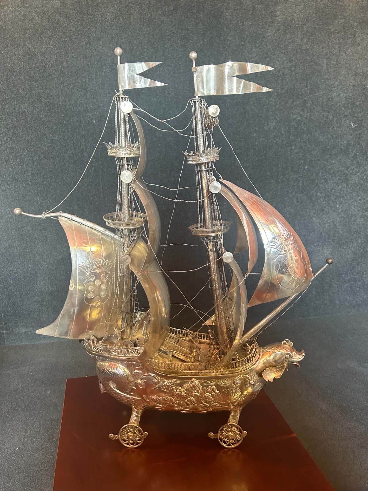 Realizada en plata fundida, repujada y cincelada, con algunos adornos